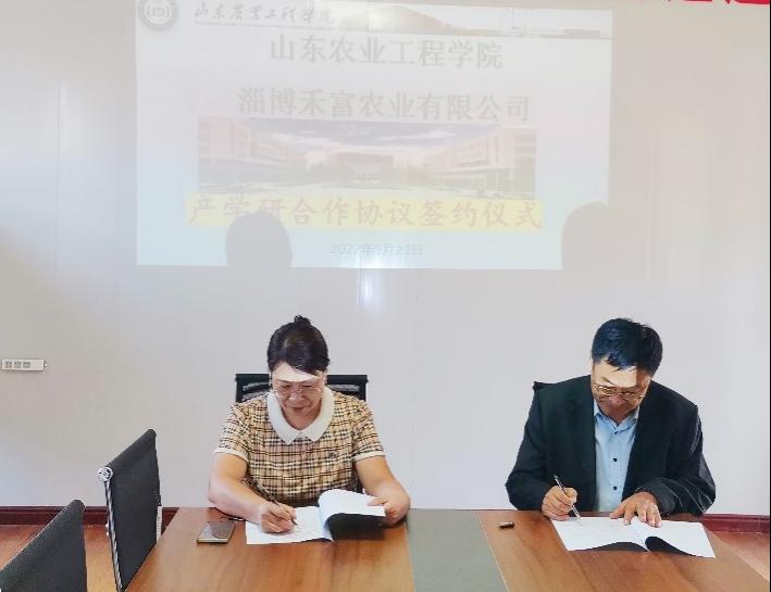 9月23日,我院与淄博禾富农业有限公司举行了产学研合作签约暨实践教学基地揭牌仪式,双方开启合作新篇章。校党委委员、副校长郑华美,学院院长苗峰,副院长张桂斋,科技处张连明及淄博禾富农业有限公司总经理洪晓青等参加本次活动。