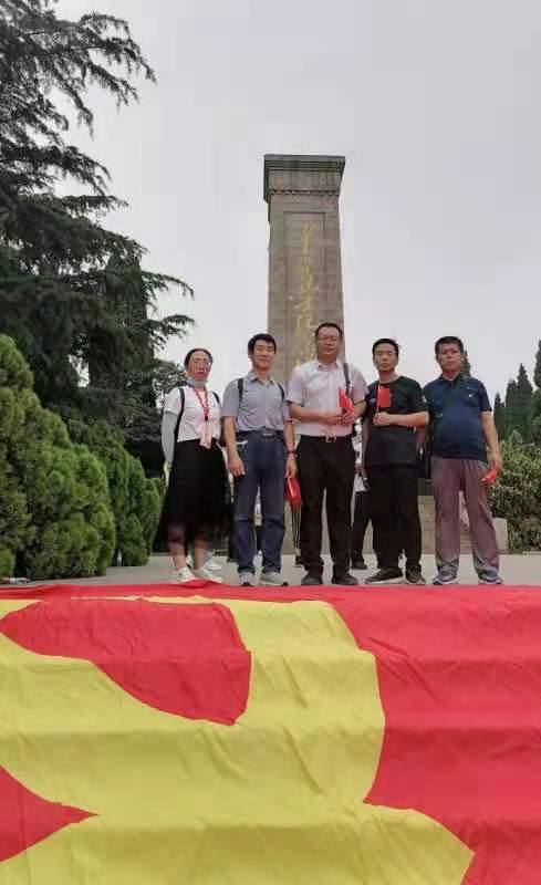 参观学习活动结束后,在莱芜战役烈士纪念碑前党员们向纪念碑敬献花篮,并在先烈们的见证下庄严宣誓,重温入党誓词。