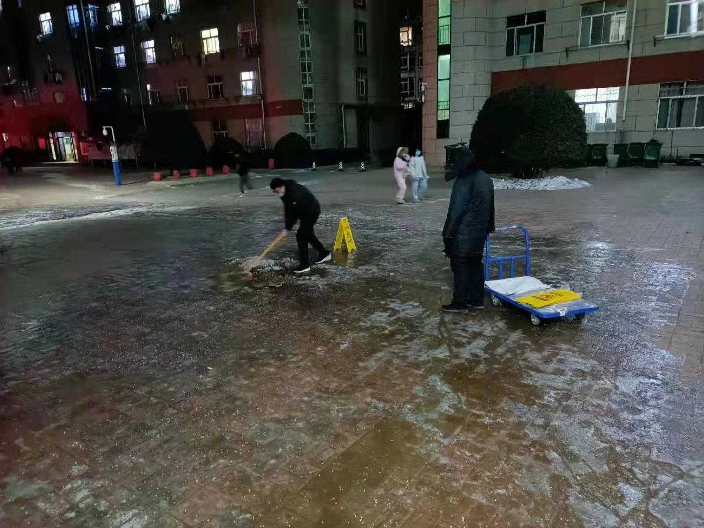 1月8日下午,3号教学楼1层消防水管爆裂,一层通道大量积水,后勤管理处积极组织物业公司员与一层各学院共同将积水清理干净。同时因为天气寒冷,为防残留积水结冰影响师生安全,物业公司布置好警示牌并及时撒播融雪剂。