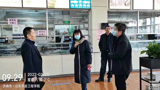 2月26日,党委委员、副校长杨玖庆在后勤管理处、学生工作部等部门负责人的陪同下到济南校区各食堂检查指导开学餐饮供应工作。