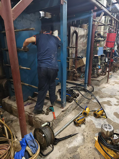 9月20日,清洗换热器的公司技术人员携带专用的清洗维护设备如约来到学校换热站,开始对板式换热器进行拆装和清洗保养,技术人员们对工作一丝不苟,精益求精。王振生处长要求必须将这项工作做深、做实、做细,确保济南校区在新的采暖季不留隐患,正常供暖,为学校的教学、办公提供良好的环境,全力做好济南校区供暖期间的后勤保障工作。