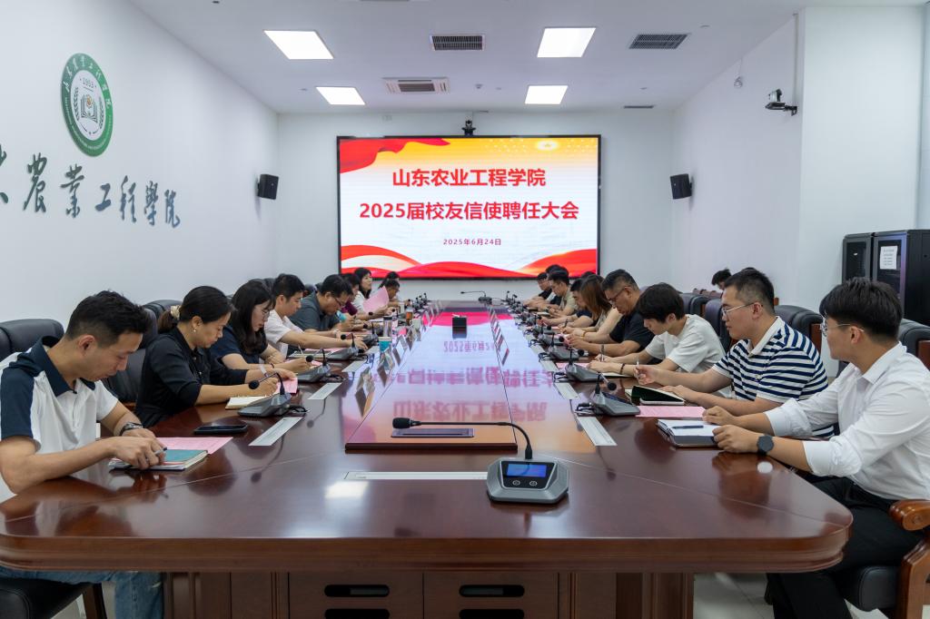 6月24日上午,学校2025届校友信使聘任大会在淄博校区举行。校党委委员、副校长、校友会会长杨玖庆出席活动。学生工作部、合作发展处、淄博校区各二级学院相关负责人,2025届校友信使代表参加会议。会议由合作发展处处长董钧主持。