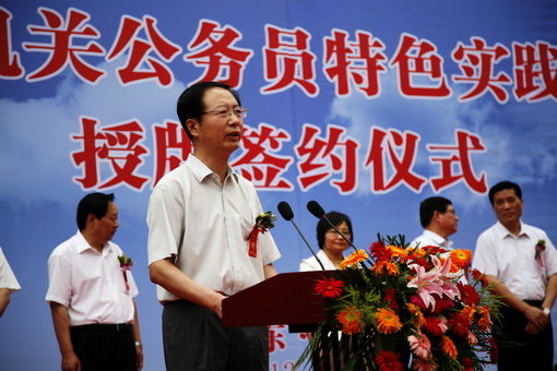 国家公务员局副局长杨春光、山东省副省长夏耕为公务员特色实践教育基地揭牌