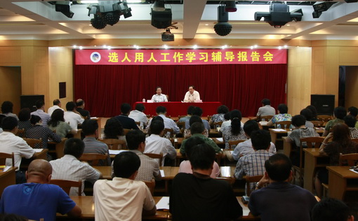 6月8日下午,我院在多动能厅召开选人用人工作学习辅导报告会。院党委书记董忠堂主持会议并作重要讲话,党委副书记王秀存作主题报告。全院处以上干部、机关科级干部听取了报告。