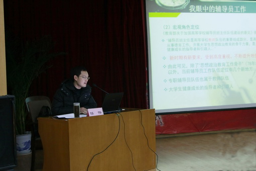 下午,我院四名优秀辅导员结合几年来的学生工作经历,分别作了工作经验交流发言。学生处处长孙会海向全体辅导员作了《把握“90”大学生特点,创新学生工作方法》专题讲座。