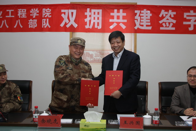 为加强军民团结,进一步发扬拥军优属、拥政爱民的优良传统,推进我院和部队精神文明建设,经双方友好协商,我院与71988部队于11月27日下午签订了共建协议。院党委委员、副院长王兴国,71988部队政委余晓虎,我院学生处处长孙会海,院团委副书记、学生处副处长陈献锋,经济管理系党总支书记李世军,会计系党总支书记曲珍英,语言文学系党总支副书记石岩,艺术系党总支副书记马荣先,71988部队副政委王付全、李兴安,政治处主任潘瑞涛出席签约仪式。仪式由71988部队政治处主任潘瑞涛主持。