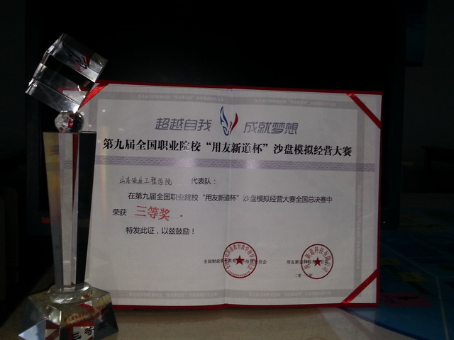 自省赛获胜归来,我院学生便积极组织备战国赛,在暑期进行了一个半月的集中培训。在院领导的大力支持下,最终遴选出由会计系主任王苹香作为领队,张芳丽、侯国栋任指导老师,学生王健强、倪婷婷、尹娇、蒋玥、任展泽5名队员组成的代表队参加了比赛。本次比赛有众多名校队伍参赛,面对比赛的激烈变化、严峻挑战,我院代表队沉着应对,随机应变,团队配合默契,最终喜获佳绩。