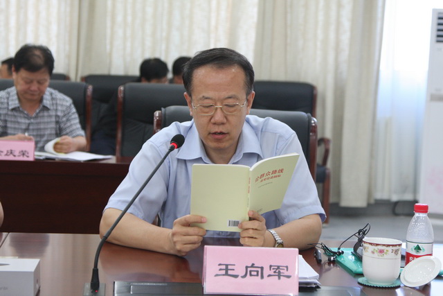 院党委副书记、教育实践领导小组副组长王向军带领大家学习《论群众路线—重要论述摘编》部分内容
