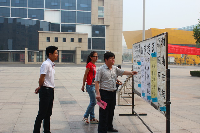 5月23日——25日,由院团委主办、信息科学与工程系承办的“中国梦”书法绘画摄影展暨第九届大学生科技文化艺术节之书法、绘画、摄影展在北校区成功举办。院党委书记董忠堂亲临现场指导工作,党委(院长)办公室主任杨茂奎,党委组宣部部长董传河,北校区学生处处长陈献峰,北校区管委会副主任苗峰,信息科学与工程系主任宋士银、党总支书记颜素杰、副主任解心江以及各系部领导、院百余名离退休老同志等观看了作品展。