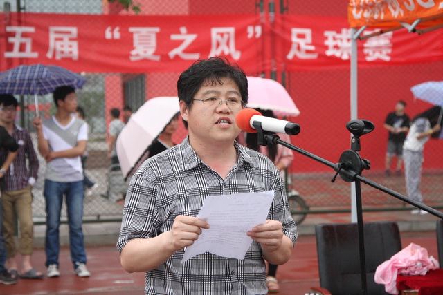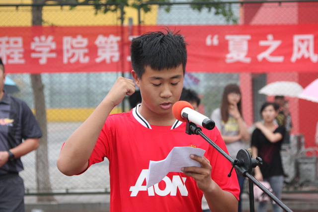 5月28日下午4点30分,今年会官方网站首届“夏之风”足球联赛在北校区拉开帷幕。副院长张兆明,院团委副书记、北校区学生处处长陈献锋及各系领导、老师和学生300余人参加了本次活动。张兆明副院长为本届足球赛开球,北校区学生处处长陈献锋致开幕词,裁判员代表毛秉斐和运动员代表马浩然分别宣誓发言。
