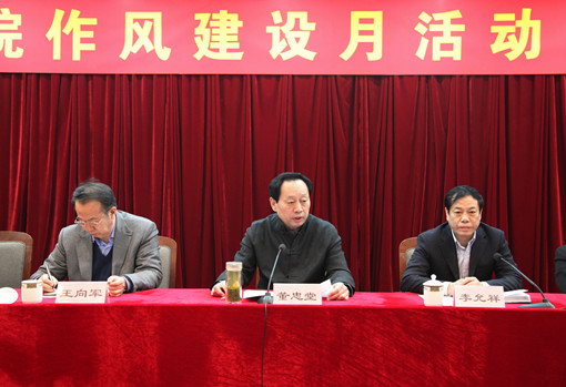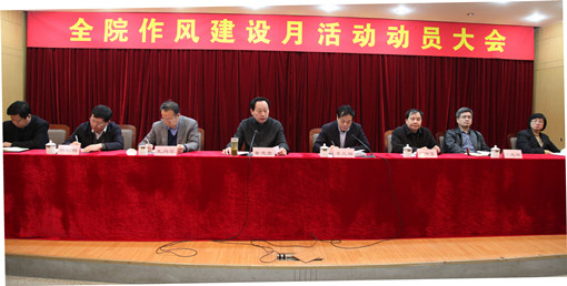 4月3日上午,我院在多功能厅召开“作风建设月”活动动员大会。全体院领导出席会议,全体处级干部和院职能部门科级干部参加了动员会。院党委书记董忠堂作动员讲话,院党委副书记、院长李允祥主持会议。此次会议是在学院贯彻中央和省委有关会议精神、响应学院“作风建设月”活动开展的背景下进行的一次加强和改进作风建设的动员会。