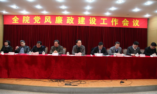 3月13日上午,我院在多功能厅召开全院党风廉政建设工作会议。院党委书记董忠堂出席并主持会议,全体院领导出席会议,全院处级干部、教师代表、民主人士代表和机关处室科级干部参加了会议。