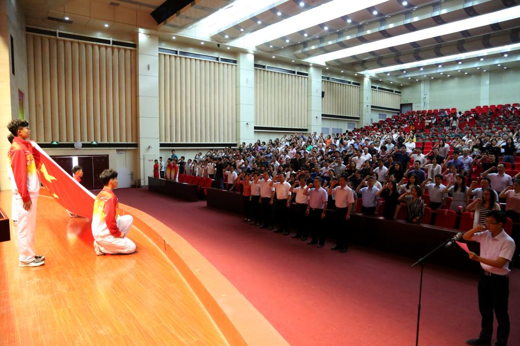 王西奎同志宣读了省委教育工委、省教育厅、校党委“双优”表彰决定,全体校领导班子成员为受表彰的个人和集体颁奖。随后,全体与会教师面向国旗,举起右拳,进行了庄严的教师宣誓。