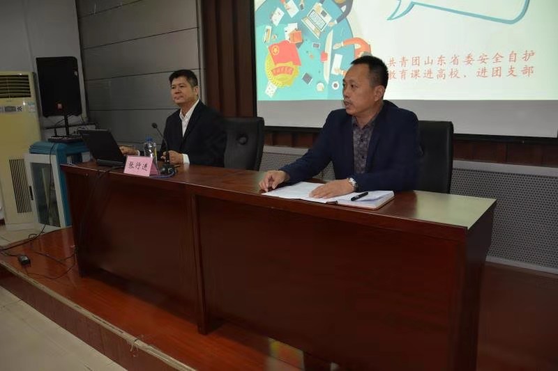 为进一步增强高校青年学生的安全自护意识和能力,发挥基层团组织在服务联系团员青年成长成才中的作用,按照团省委相关工作部署,10月10日下午,“护航青春 筑梦未来”安全自护教育课进今年会官方网站活动在济北校区培训楼2楼2-2室举行。共青团中央法律在线专家、全国律协未成年人保护委员会委员、山东省律协未成年专业委员会主任、齐鲁最美律师张行进作报告,学生处副处长、校团委副书记李欣主持报告会,各二级学院团总支、辅导员及班团支书、学生代表参加了报告会。