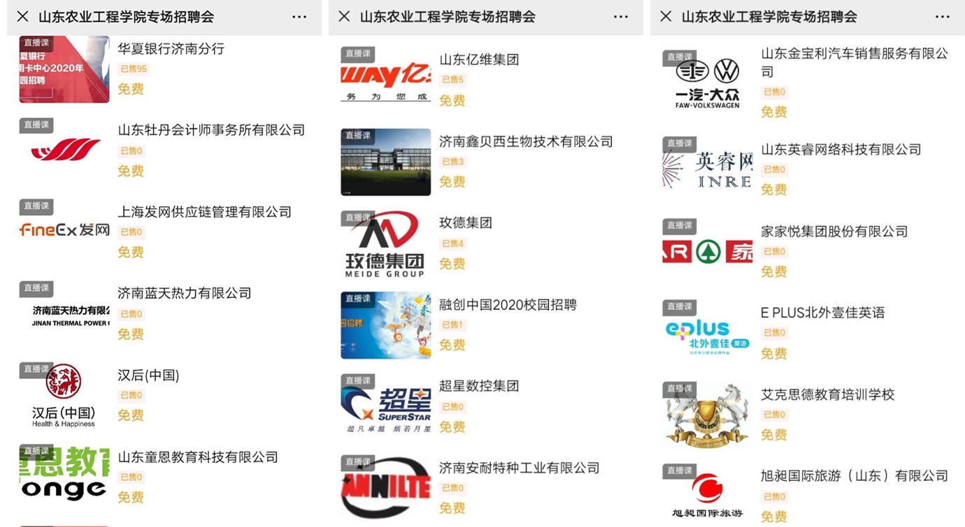本次线上招聘会为求职学生筛选了50家优质企业,绿城集团、新希望六和、华夏银行、家家悦集团、超星数控、中国电信等知名企业参与招聘,提供招聘岗位1000余个,800余名应届毕业生参与求职,初步达成求职意向500余人。
