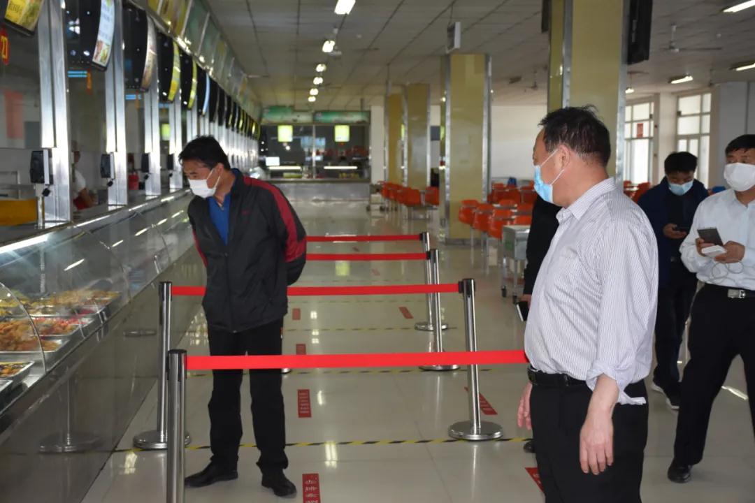 刘文峰实地检查了门岗测温点、隔离室、餐厅、宿舍等重点区域,详细询问了学校疫情防控具体措施、应急预案制定、教学开展情况、食宿安全管理等,并就扎实有效做好开学复课工作提出具体要求。
