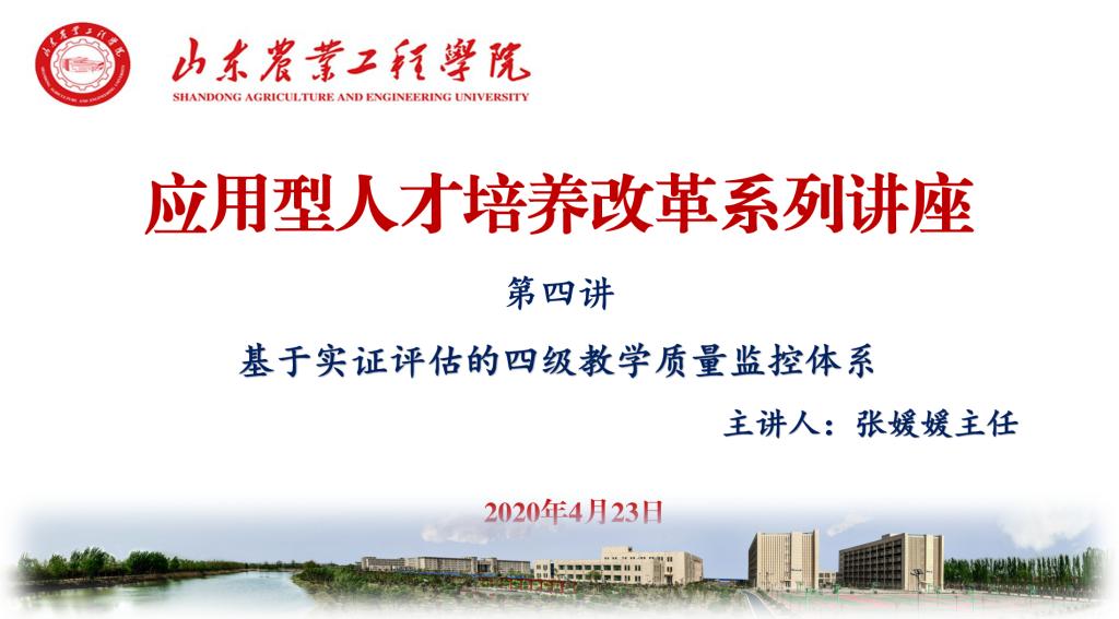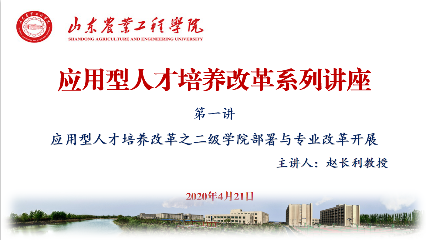 为进一步深化教育教学改革,学习应用型人才培养改革经验,全面推动今年会应用型人才培养内涵提升,4月21日至5月13日,教学质量保障与评估中心组织举办《应用型人才培养改革系列讲座》,特邀山东交通学院专家团队采取在线直播会议形式进行。校领导、相关部门负责人和学院领导及骨干教师踊跃参加,五场讲座总计参加800多人次,反响热烈。