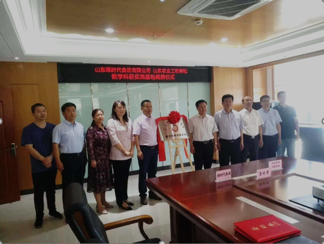 近日,校党委委员、副校长杨振宁,科技处处长董传河、食品学院院长于克学以及相关老师一行4人赴济阳区山东绿时代食品有限公司召开校企合作签约会议。济阳区副区长牟晓丽、济北开发区管委会副主任刘佩珍、区农业农村局局长焦玉印、区科技局局长董峰、绿时代食品有限公司董事长谢慧诚等出席签约仪式。会议在济北开发区总部经济中心召开。