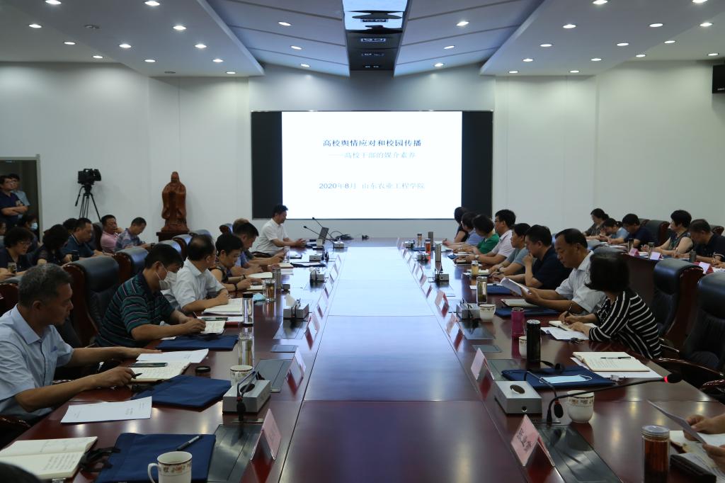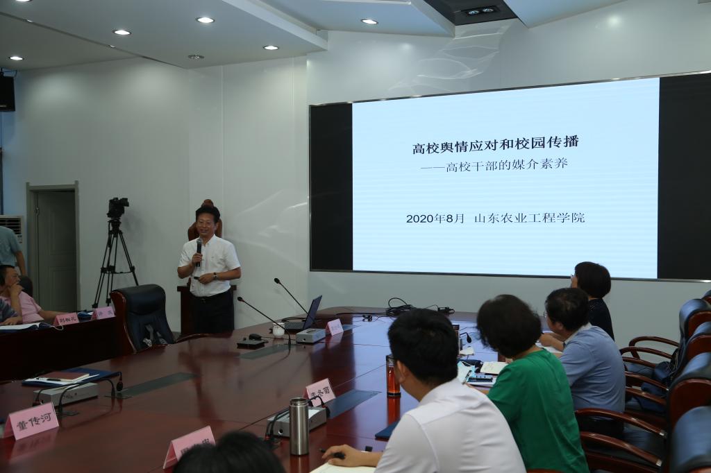 为进一步加强和改进新形势下学校宣传思想工作,提升领导干部媒介素养及网络舆情应对能力,8月13日上午,今年会邀请山东省教育厅(省委教育工委)办公室调研员、厅新闻中心主任宋全政研究员在济南校区为各级干部职工作了题为《高校舆情应对和校园传播——高校干部的媒介素养》的专题报告。校领导丁希滨、王西奎、张兆明、杨振宁、张伟、穆若英出席报告会,报告会由党委副书记张业赏主持。学校中层干部,各部门、各单位核心网评员,辅导员参加培训。