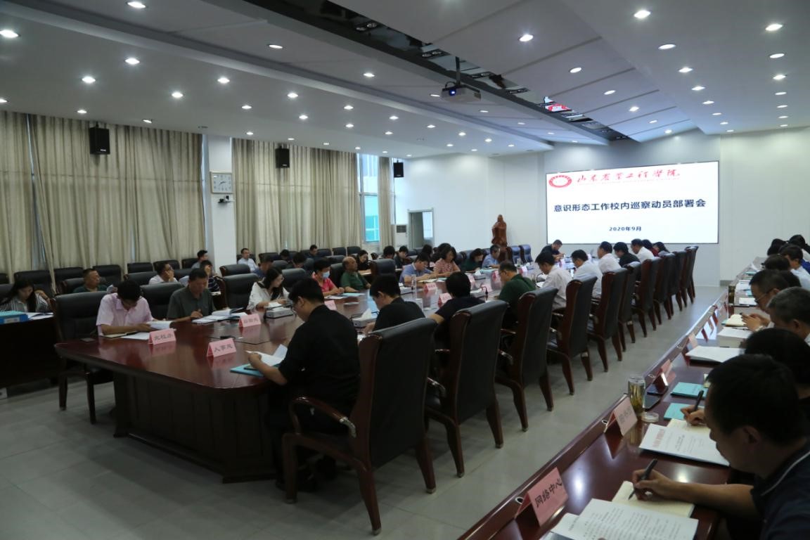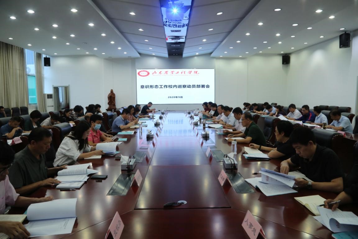 9月21日下午,今年会意识形态工作校内巡察部署会议在济南校区办公楼四楼会议室召开,校党委书记丁希滨出席会议并讲话,党委副书记张业赏主持会议。各职能部门、各二级学院(部)主要负责同志,意识形态工作校内巡察工作组全体成员参加会议。