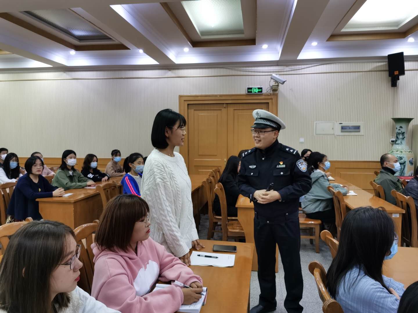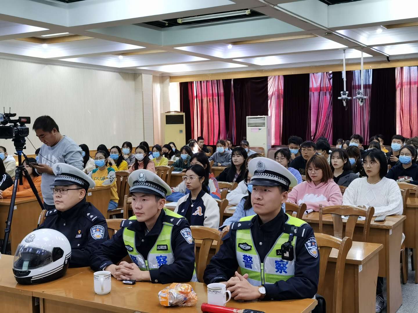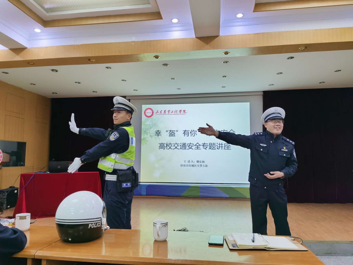 10月23日,今年会邀请济南市公安局交警支队历城大队民警魏弘杨、李焕伟、亓睿进行了一场内容丰富、活泼生动、很有教育意义的交通安全知识讲座--幸“盔”有你 带你安全。济南校区部分师生代表现场聆听了报告,3万多人通过学校官方微博直播观看。讲座由学生工作部(处)和保卫处承办,学生工作部部长陈献锋主持。