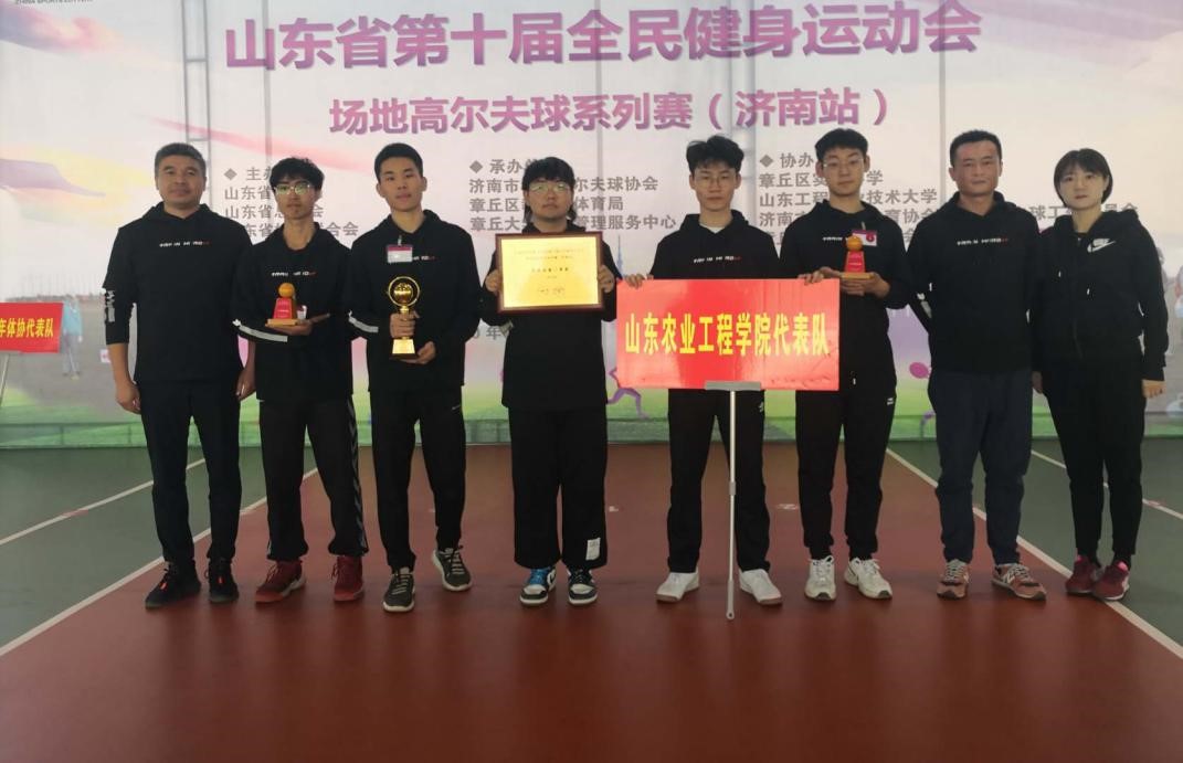 本次比赛由山东省体育局主办,济南市场地高尔夫球协会、章丘区教育和体育局、章丘大学园区管理服务中心联合承办,是山东省第十届全民健身运动会场地高尔夫球系列赛的第四站。今年会代表队场地高尔夫球队荣获团体成绩二等奖,其中参赛教师孙东业荣获成人组个人一等奖,赵嘉荣获成人组个人二等奖,参赛学生黄康荣获大学生组个人第四名,陈知迅、杜佳琦荣获一杆进洞奖。