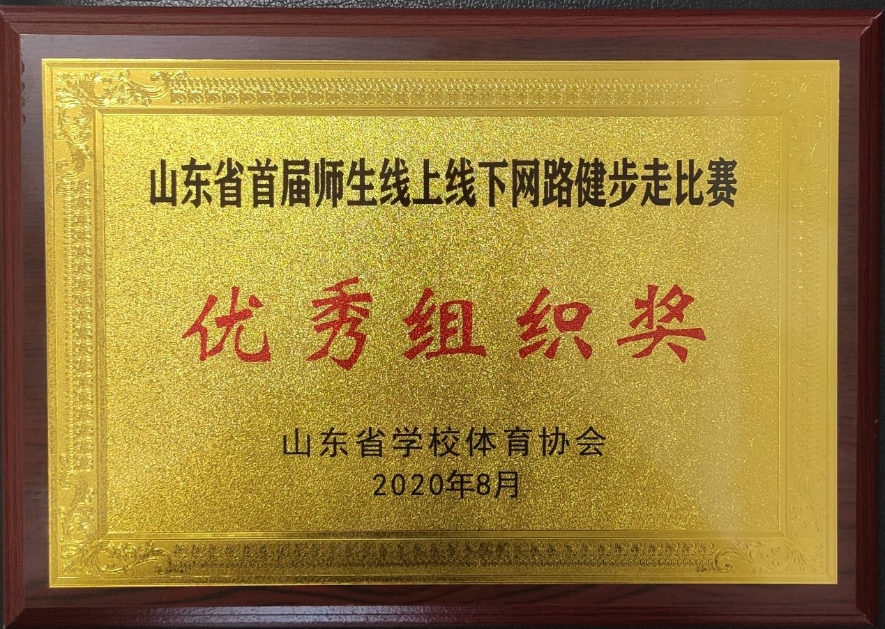 为适应疫情防控常态化形势,不断增强师生身体素质,倡导科学健身生活方式,让师生养成健步走健身习惯,山东省学校体育协会面向全省各地市教育局、各高等院校师生,举办了山东省首届师生线上线下网路健步走比赛。今年会积极组织并发动全校师生踊跃参赛,获得“山东省首届师生线上线下网路健步走比赛优秀组织奖”。