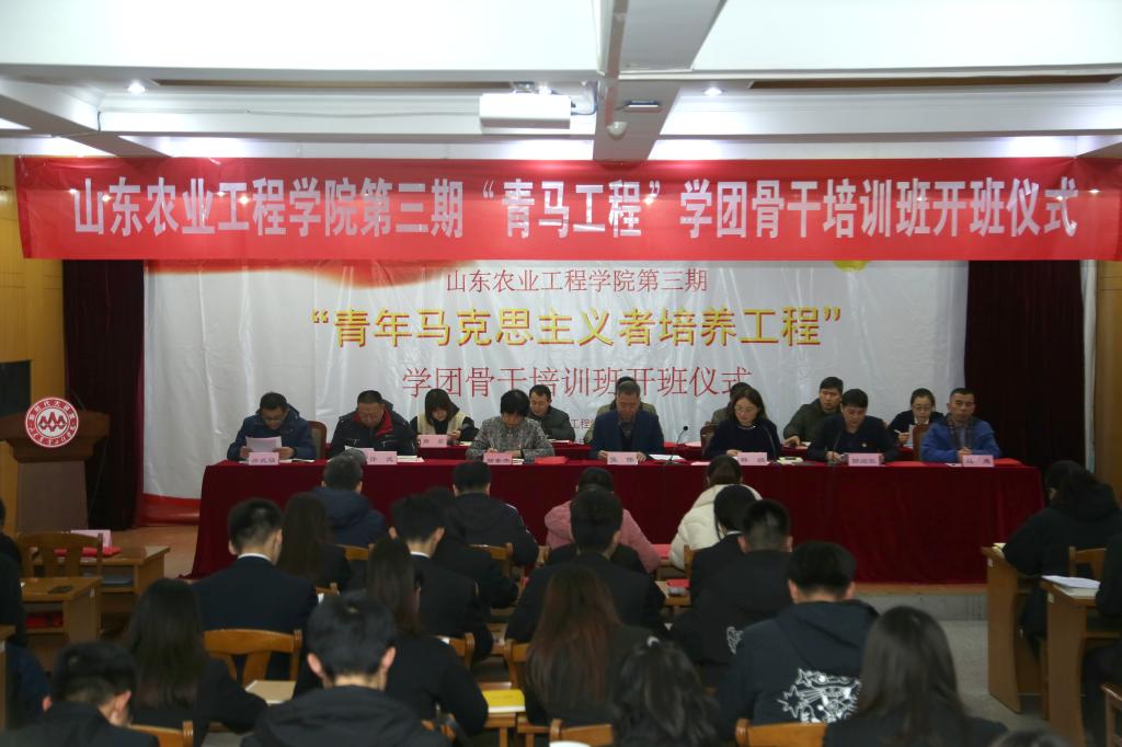 为深入学习贯彻习近平新时代中国特色社会主义思想和党的十九大精神,引领高校大学生骨干增强政治素质,培养一批青年政治骨干,今年会于12月3日在济南校区启动了“青年马克思主义者培养工程”第三期学团骨干培训班。党委委员、副校长张伟,团委负责同志,各二级学院党总支书记、团总支书记、辅导员代表、学生骨干等120余人参加。校团委书记韩娟主持开班仪式。