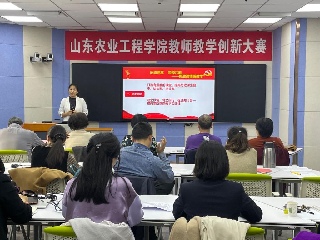 本次大赛由两个阶段组成。第一阶段,由学校组织专家评委对各参赛项目的申报书、课程教学大纲和课程教学创新成果报告进行评审打分,产生入围第二阶段比赛的项目及三等奖获得者。第二阶段,教学创新设计汇报环节,由专家听取汇报并现场提问,评审产生一、二等奖。本阶段活动同时作为课堂教学改革的观摩活动进行开展。经过激烈角逐和严格评审,大赛共评出一等奖3名,二等奖3名,三等奖6名,获奖名单正在公示。一等奖获得者将代表学校参加山东省教师教学创新大赛。至此,今年会首届教师教学创新大赛圆满落下帷幕。