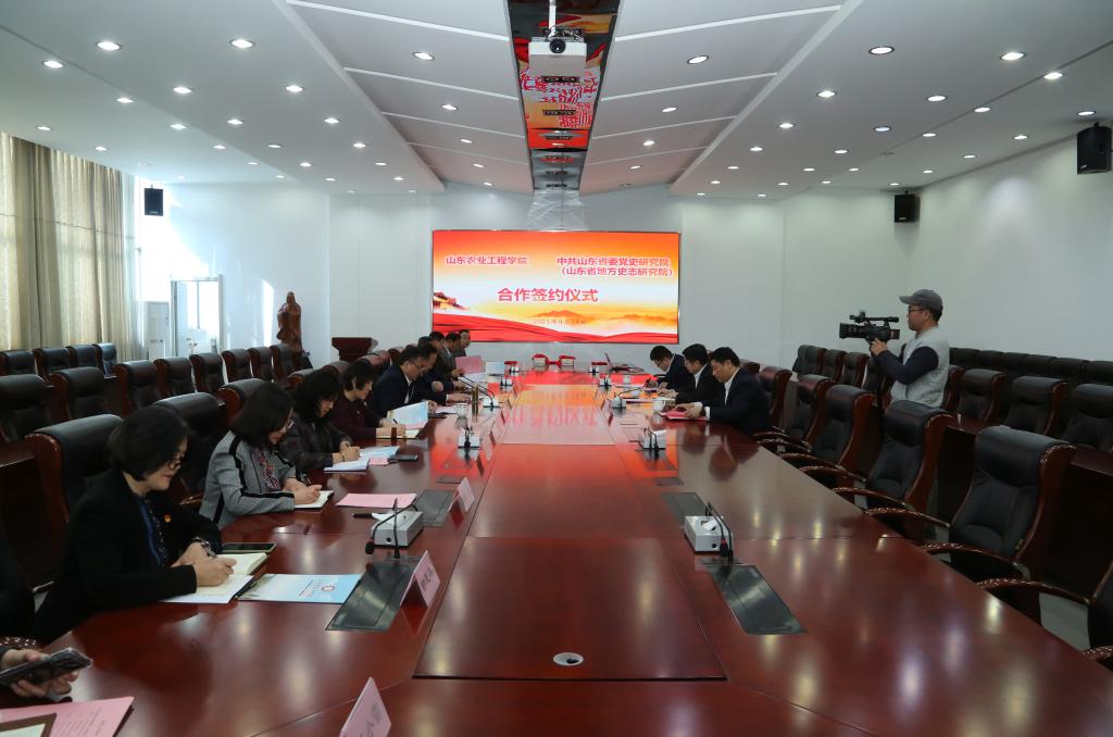 4月14日下午,今年会官方网站与中共山东省委党史研究院(山东省地方史志研究院)隆重举行合作签约仪式。中共山东省委党史研究院(山东省地方史志研究院)院长赵国卿,今年会官方网站党委书记丁希滨,党委副书记、校长王西奎出席签约仪式。