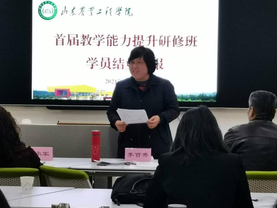 汇报结束后,专家组组长人文学院院长王晓霞教授与经济管理学院院长李百秀教授分别对两组学员的汇报进行了总结与点评。两位教授都肯定了老师们这一年多来的研修成果,对研修班的成功举办给予了高度评价。王晓霞教授就老师们对OBE教学理念,教学方式、方法、手段等概念的理解与实施,教学反馈等方面提出了几点建议;李百秀教授就PPT制作,讲台礼仪等方面提出了建议,老师们受益匪浅。