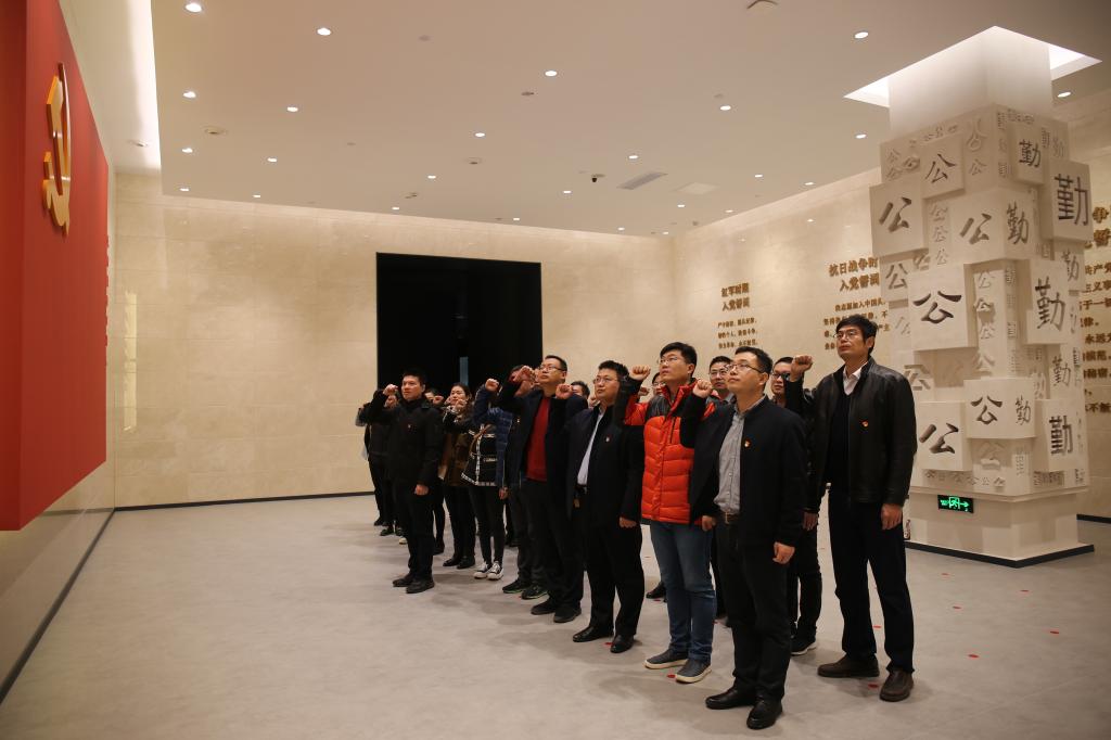 在宣誓厅内,参加活动的党员干部在党旗下进行了宣誓,重温初心使命。