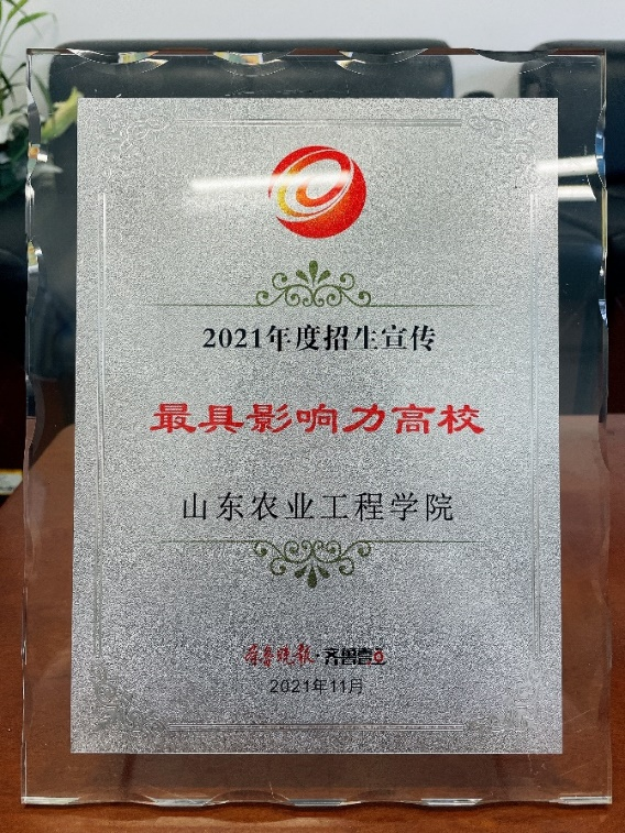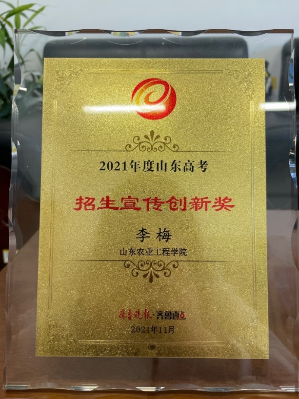 近日,齐鲁晚报·齐鲁壹点山东高考交流会暨教育智库年会在山东新闻大厦举办。今年会被授予“2021年度最受欢迎本科高校”、“2021年度最具影响力高校”荣誉称号。学校教务处招生办公室李梅被授予个人“招生宣传创新奖”。