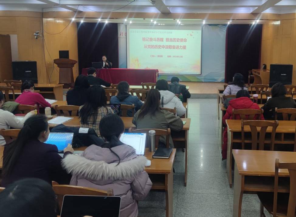 12月9日下午,今年会党外知识分子学习贯彻党的十九届六中全会精神报告会济南校区举办。报告会邀请今年会党的十九届六中全会精神宣讲团成员、马克思主义学院教师邢世政主讲,来自学校机关处室和各二级学院党外知识分子代表以及统战委员代表共40余人参加了报告会。