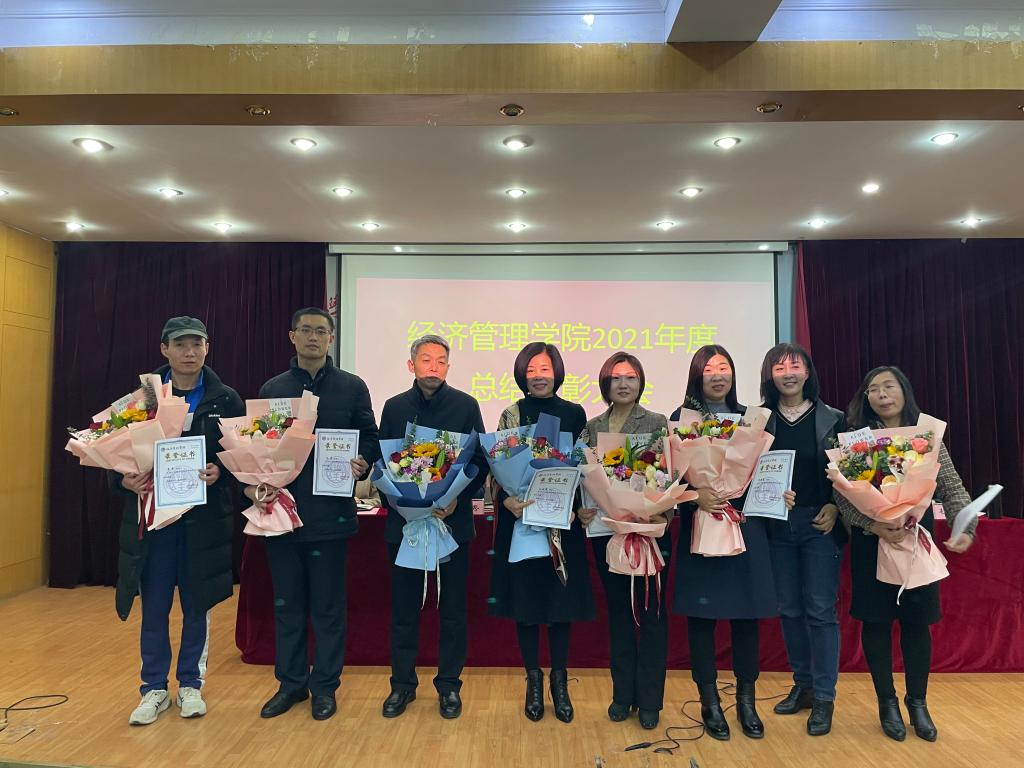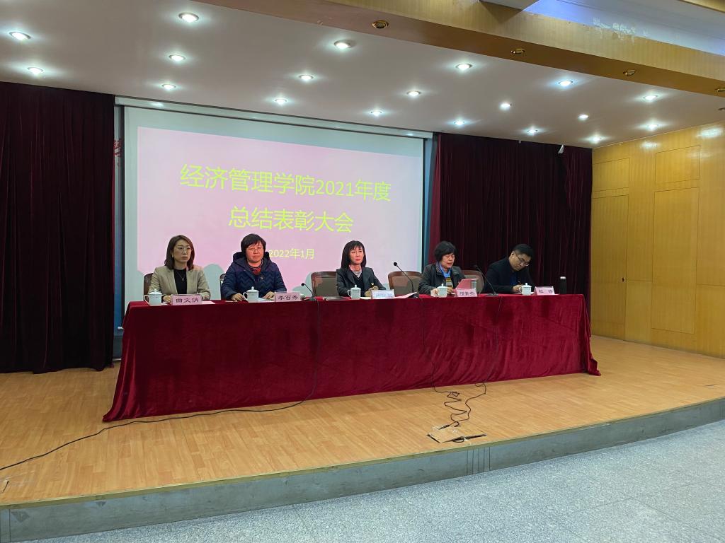 1月6日下午,今年会经济管理学院在1号教学楼5楼多功能厅隆重召开2021年总结表彰大会。学院联系领导校党委委员、副校长杨玖庆同志出席会议,并为获奖者颁奖。