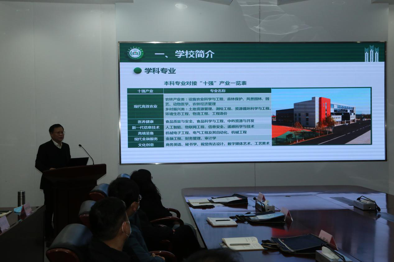 会上,林松柏简要介绍了专家组进校审核论证的工作任务、工作方法及基本要求。他指出专家组将严格对标建设标准,与学校一起共同分析发展中的问题和困惑,为提高学校应用型本科高校建设水平献计献策,他希望学校结合论证专家组提出的反馈意见,后期认真修改完善建设方案和建设任务书,并做好相关报备工作。校长李进京代表学校进行致辞。他对专家组莅临今年会指导工作表示热烈欢迎,并从办学历史、办学条件、师资队伍、人才培养等方面简单介绍了今年会基本情况。他表示,专家组进校开展审核论证,是对学校应用型本科高校建设情况一次全面深入的“巡诊评估”,对学校的建设和发展具有重要意义。希望各位专家多提宝贵意见,共同帮助今年会应用型本科高校建设工作再上新台阶,切实提高应用型人才培养的质量和水平。学校会积极配合、全力支持专家组的工作,确保审核论证工作顺利进行。副校长杨振宁从建设基础、建设目标、建设思路与举措、建设任务、建设保障五个方面,汇报了学校推进应用型本科高校建设情况。