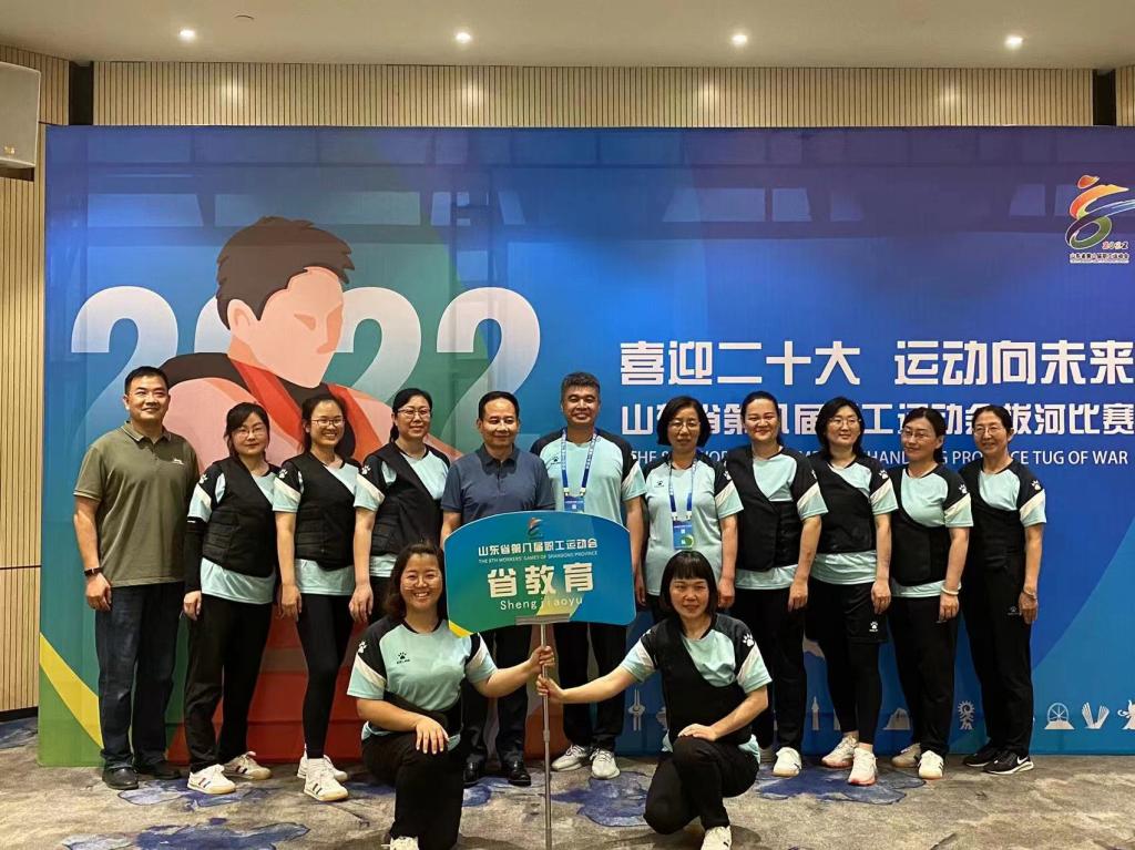 6月7日上午,由省总工会、省委宣传部、省委省直机关工委等8家单位联合举办的“喜迎二十大、运动向未来”山东省第八届职工运动会拔河比赛在齐河举行,今年会受省教育工会委托派出男女两支队伍参加了比赛并取得满意的成绩,省教育工会主席宋志明全程进行指导。