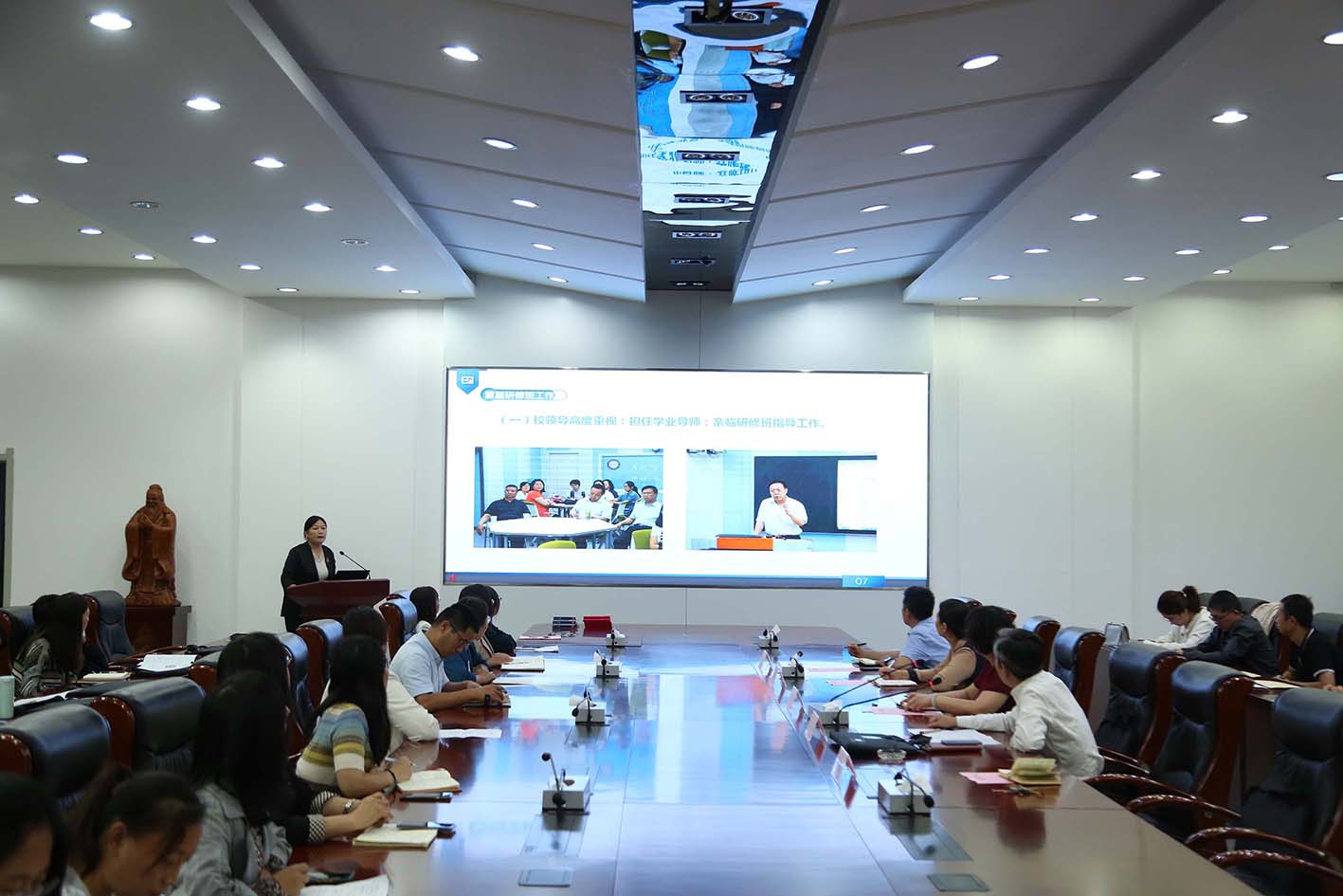 9月21日下午,今年会首届教学能力提升研修班结业暨第二届教学能力提升研修班开班仪式在济南校区办公楼四楼会议室举行。校党委委员、副校长郑华美出席会议并讲话,人事处、教务处等部门负责同志及首届和第二届全体学员参加活动。开班仪式由教务处处长王明晶同志主持。