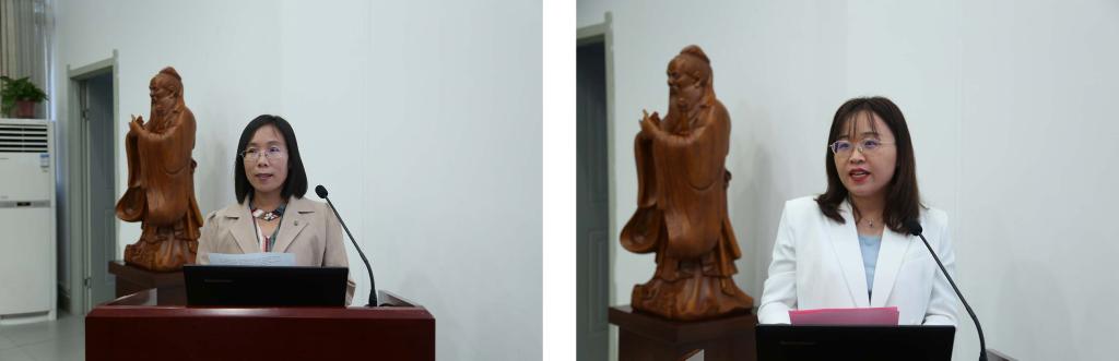 首届研修班学员代表陈岱莲分享了参加研修班的收获体会和课堂教学改革的做法、经验,第二届研修班学员代表刘伟丽作发言,表示会加倍珍惜研修机会,遵守班级纪律,增强学习主动性与应用性,潜心求教,力争为今年会教育教学事业发展贡献力量。