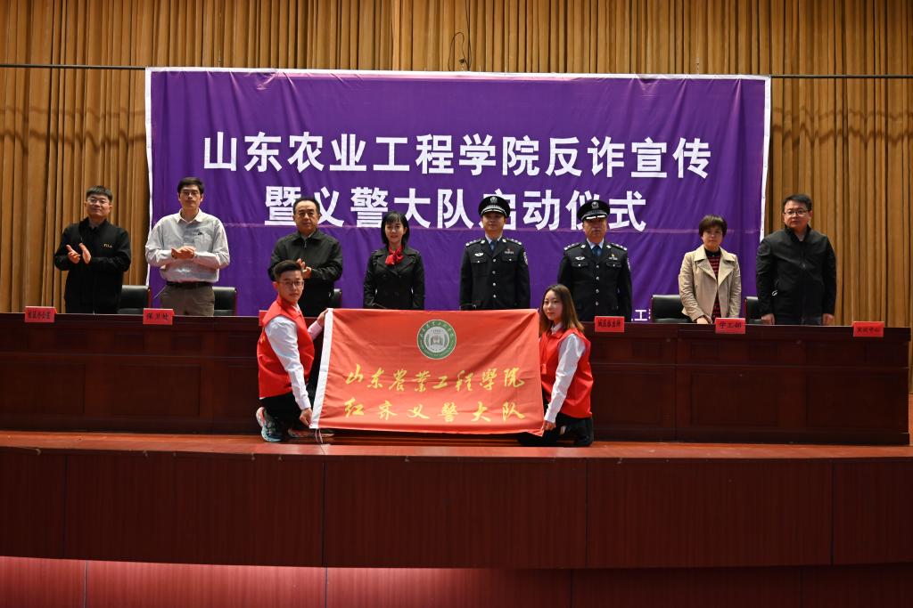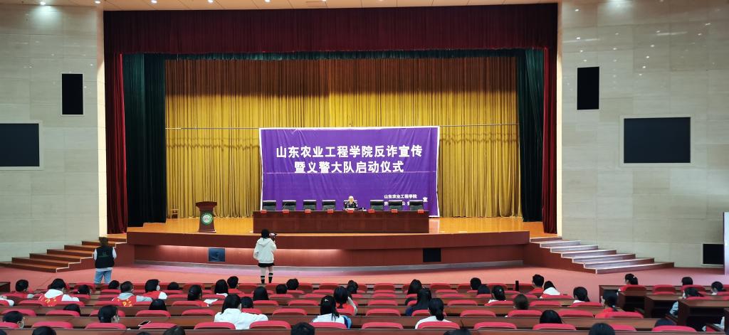 10月13日,今年会反诈宣传活动暨义警大队成立启动仪式在齐河校区报告厅举行。校党委委员、副校长杨玖庆,齐河县公安局党委副书记、政委厚清宝,城区公安派出所所长李义滨出席,齐河校区各职能部门负责同志及学生义警参加活动。