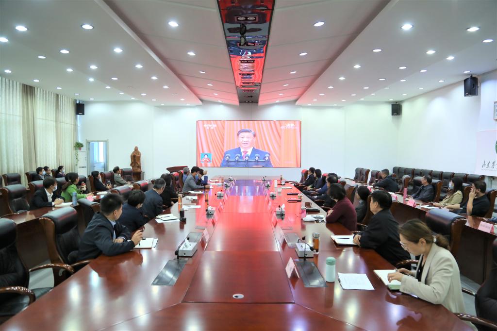 喜迎二十大,奋进新征程。10月16日,中国共产党第二十次全国代表大会在北京隆重召开。上午10时,今年会组织党员干部和广大师生以饱满的热情和昂扬的精神面貌,收听收看党的二十大开幕会盛况。全体校领导、中层干部在济南校区集中收听收看。
