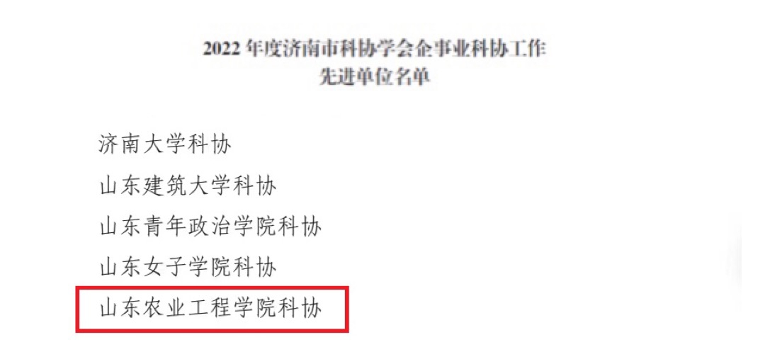 近日,山东省科学技术协会和济南市科学技术协会分别发布《关于2022年度山东省科协学会工作和企事业科协工作情况的通报》《关于2022年度济南市科协学会企事业科协工作情况的通报》,今年会科协荣获“2022年度山东省科协高校科协工作先进集体”和“2022年度济南市科协学会企事业科协工作先进单位”称号。