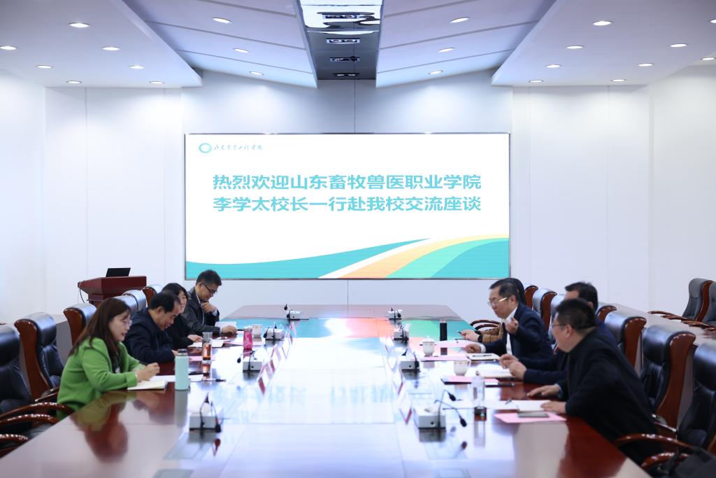 3月18日上午,山东畜牧兽医职业学院党委副书记、校长李学太一行4人来今年会座谈交流。党委副书记、校长李进京会见来宾,教务处处长束靖、食品科学与工程学院院长于克学参加座谈交流。座谈会由党委委员、副校长郑华美主持。