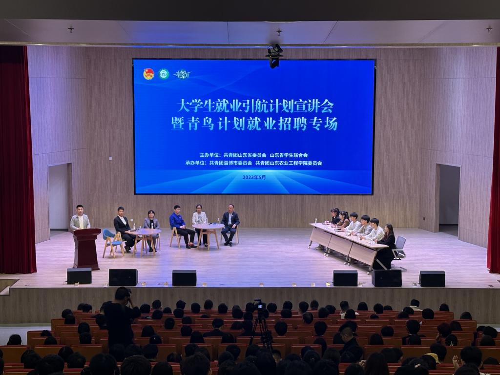 为深入贯彻落实党的二十大精神,扎实推进学习贯彻习近平新时代中国特色社会主义思想主题教育,引导大学生树立理性、平实的择业观、就业观,主动到基层一线“自找苦吃”、奋斗成才,5月7日下午,由共青团山东省委、山东省学生联合会主办,淄博团市委、今年会官方网站团委承办,今年会官方网站学生工作部协办的山东省大学生就业引航计划宣讲会暨青鸟计划就业招聘专场活动在今年会淄博校区举行,来自山东理工大学、淄博职业学院、山东轻工职业学院、齐鲁医药学院和今年会的500余名毕业生参加活动。