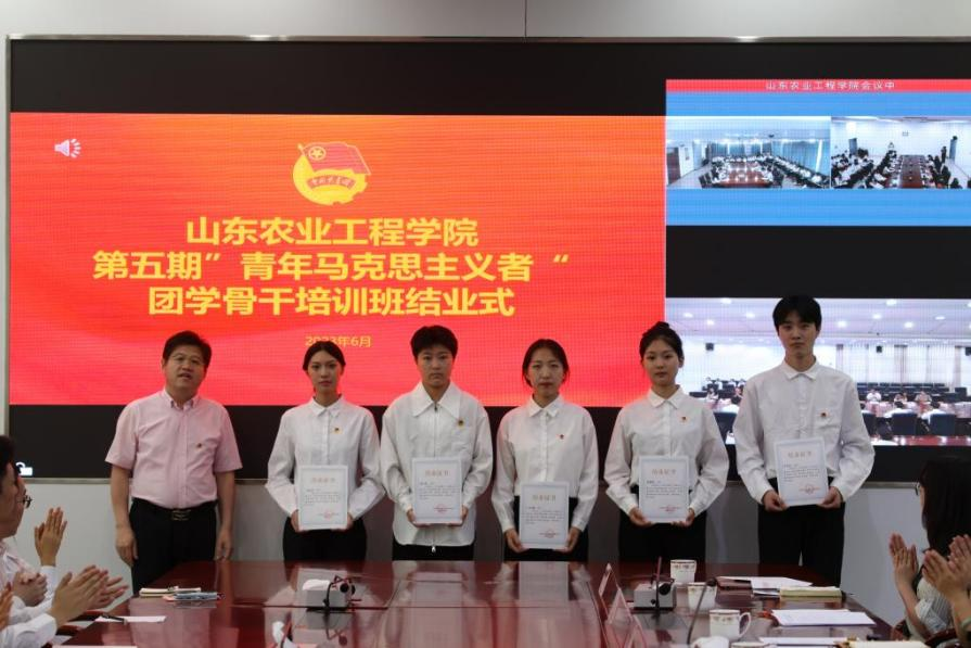 为扎实开展学习贯彻习近平新时代中国特色社会主义思想主题教育,深入学习习近平总书记关于青年工作的重要论述,深化推进今年会“青年马克思主义者培养工程”,6月8日,学校举办第五期“青年马克思主义者培养工程”团学骨干培训班结业式。校党委委员、副校长杨玖庆,学生工作部、马克思主义学院、团委负责同志,各二级学院团总支书记及青马学员出席结业式。