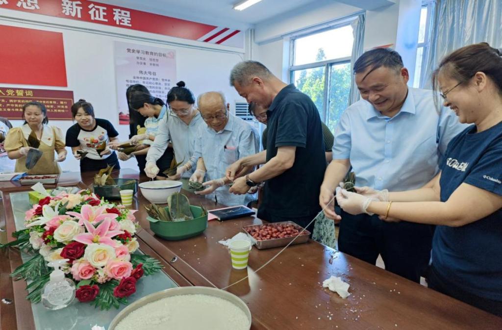 会后,退休老干部与在场师生共同体验传统节日活动——包粽子,大家撸起袖子,捋粽叶、盛米、置枣、裹粽子,现场其乐融融,欢声笑语,忙得不亦乐乎。新老长幼之间,既是经验、手法的教授和交流,更是山工院精神的传承。大家不仅体验了传统文化,更感受到了老一辈教育工作者对年轻一代人的关心和期望。大家一致表示,在今后的学习和工作中,继续传承弘扬老一辈山工院人不怕吃苦、敢于奋斗的精神,在新征程中踔厉奋发,勇毅前行,奋力推进学校高质量发展。