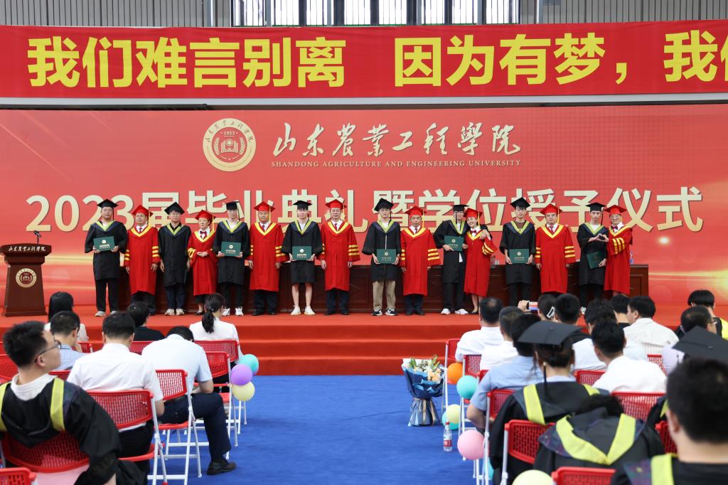 跃入人海,星河灿烂;鹏程万里,未来可期。6月27日、6月28日上午,学校2023届毕业典礼暨学位授予仪式在济南、齐河、淄博三校区隆重举行。校领导张鸿波、李进京、张业赏、黄晓彦、杨玖庆、郑华美、周吉鹏、牛化振、韩娟出席典礼,各二级学院(部)和有关职能部门负责人、教师代表、毕业生辅导员、2023届毕业生参加典礼。典礼由党委委员、副校长杨玖庆主持。