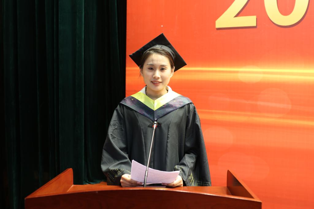 经济管理学院李贵梅、林业工程学院陈春利、食品科学与工程学院祝梦柳作为教师代表,衷心祝贺2023届毕业生顺利完成学业,祝愿全体毕业生乘风破浪、扬帆起航,在新时代新征程上书写绚丽多彩的人生华章。人文学院贾仁昊、农业科技学院吴玉卿、信息科学与工程学院李歆怡代表2023届毕业生发言,他们深情回顾了在校期间的学习生活和难忘瞬间,表达了对母校最真挚的祝福。“感谢师恩,爱在心间”,毕业生代表为教师代表献上鲜花,感谢老师的无私培育和辛勤付出。