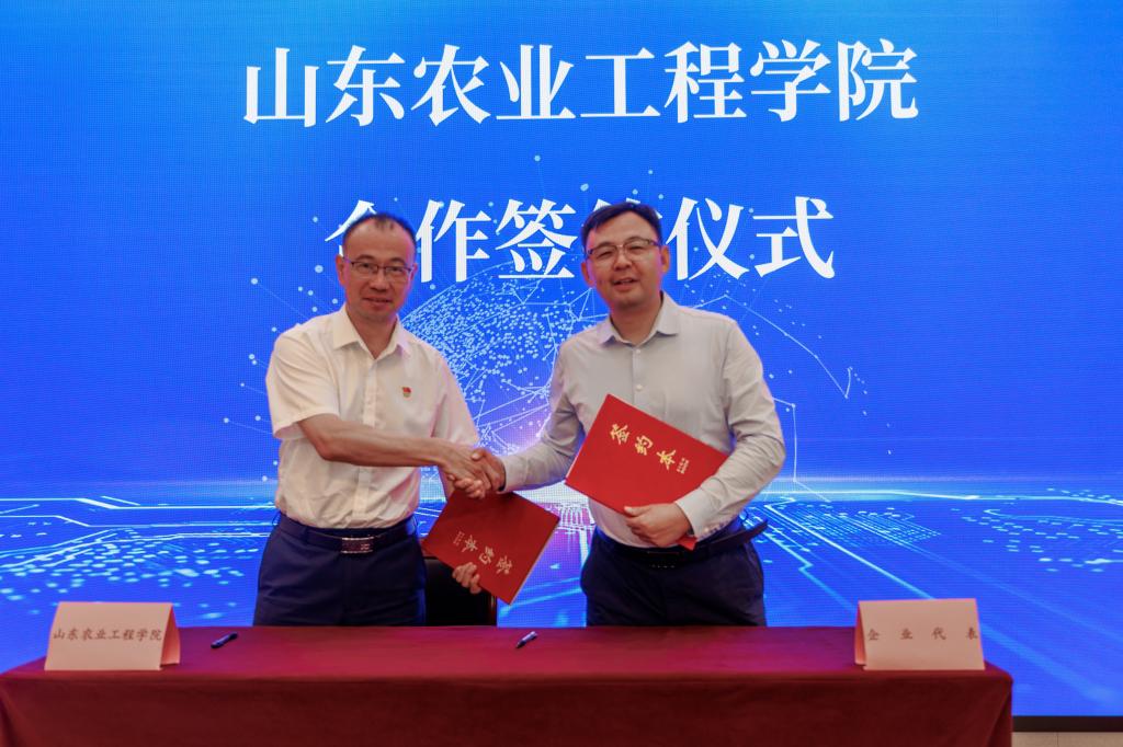 人文学院党总支书记王纪分别与滕州市柴胡店镇党委书记韩建行、山东仁德艾制品有限公司总经理张国徽、政和科技有限公司董事长朱涛签订校企合作协议。