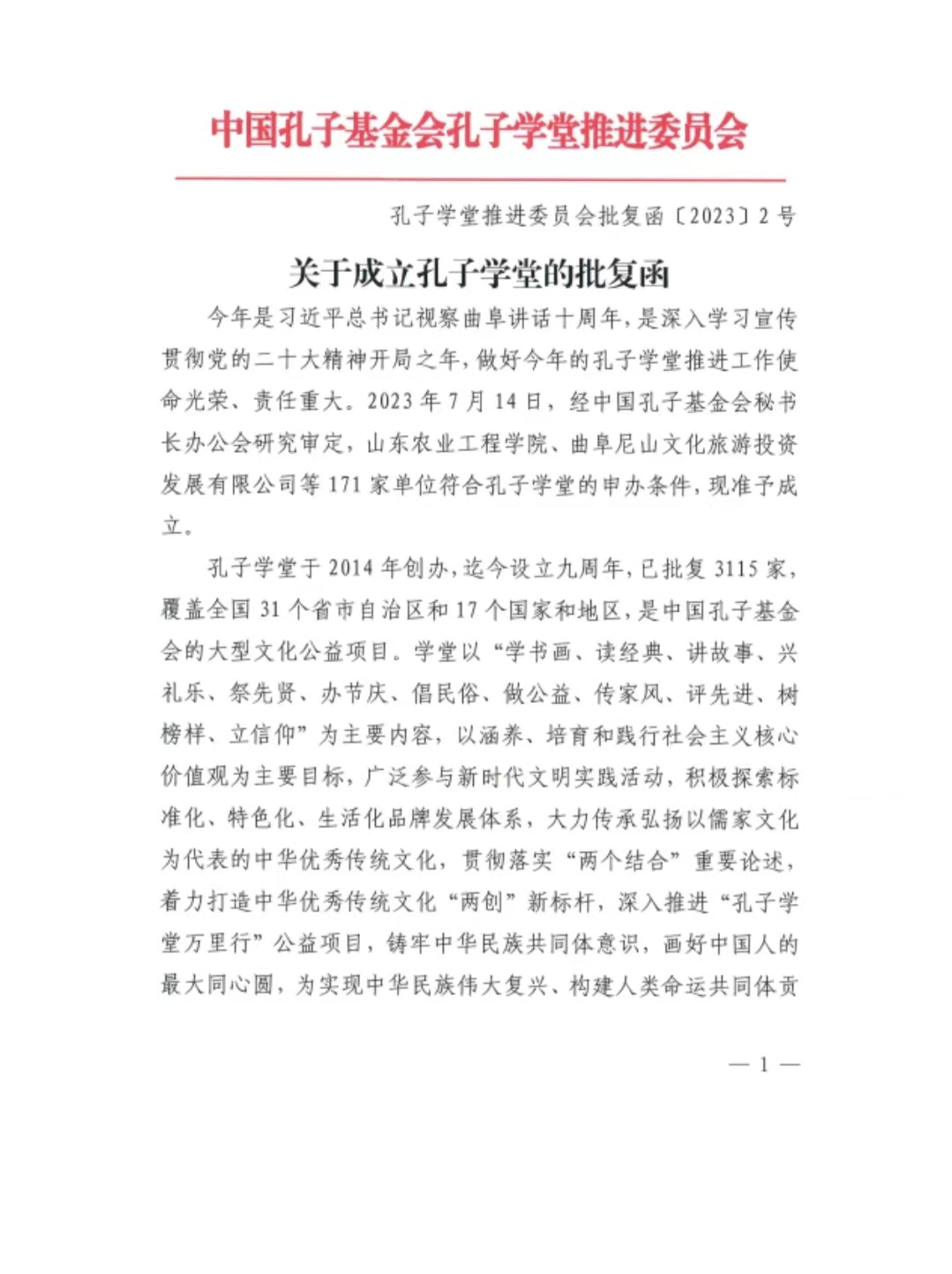 近日,经中国孔子基金会秘书长办公会研究审定,中国孔子基金会孔子学堂推进委员会批复,今年会获批成立孔子学堂。